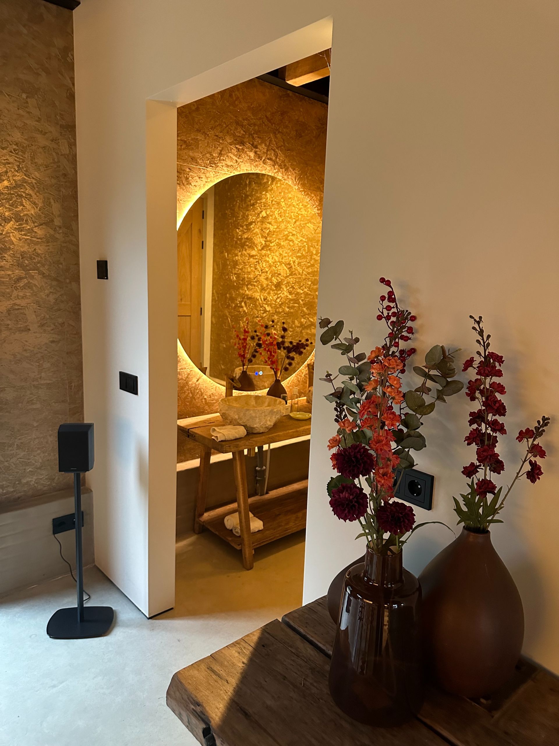 Gebouwd met 18e-eeuws kloosterstenen en natuurlijke materialen, ademt deze ruimte karakter. De grote raampartijen brengen licht en lucht. Warm van sfeer, hoogwaardig afgewerkt, een plek waar je je welkom voelt.